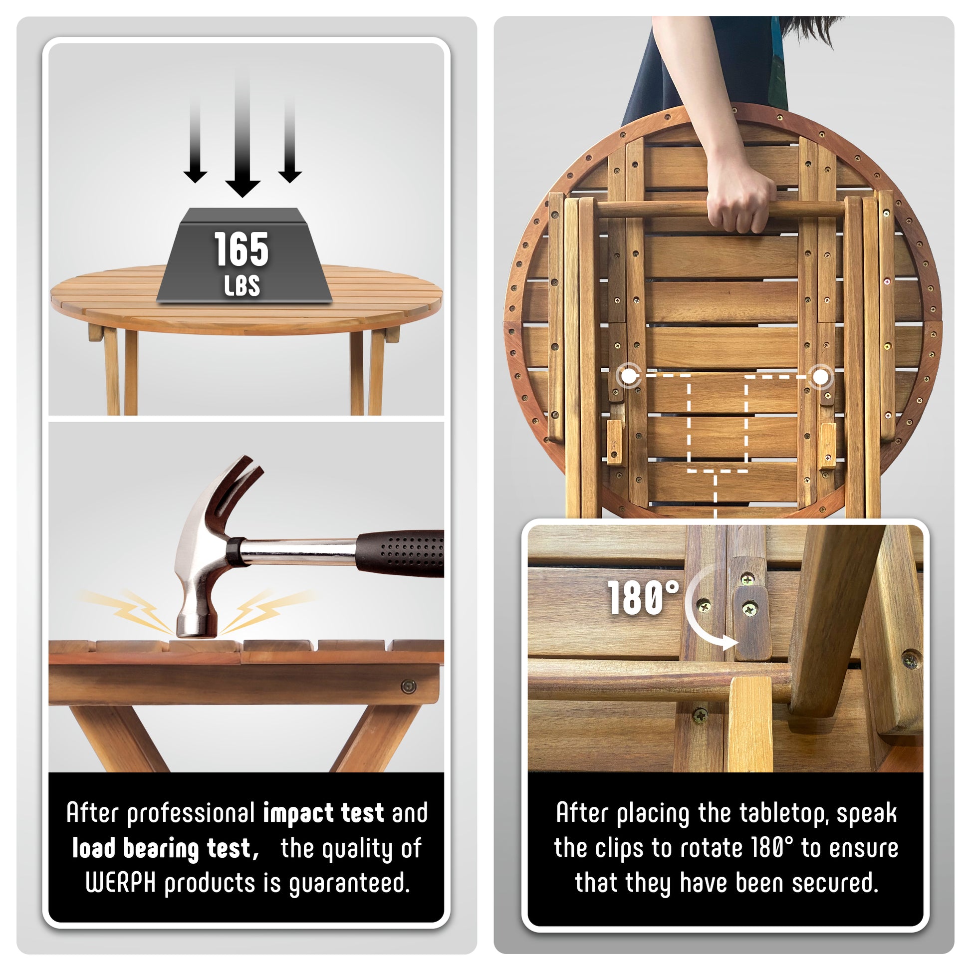 4.Humanized Design: The desk features a built-in locking mechanism that keeps the desktop stable when moving it, without causing any tilt, just in case you only want to move but not fold. For folding, simply unlock the mechanism, folds away easily
