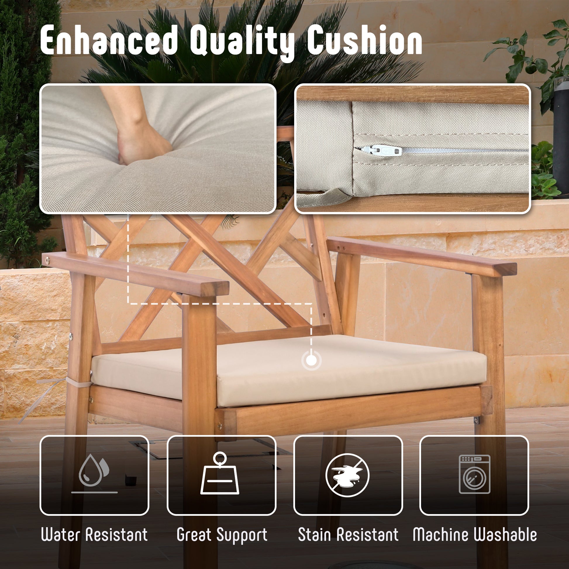 4.Versatile Seating Arrangement: This outdoor patio set includes two single chairs and a table, offering customizable arrangements for any occasion. Whether entertaining guests or enjoying a quiet evening, this elegant wood furniture enhances your outdoor living experience